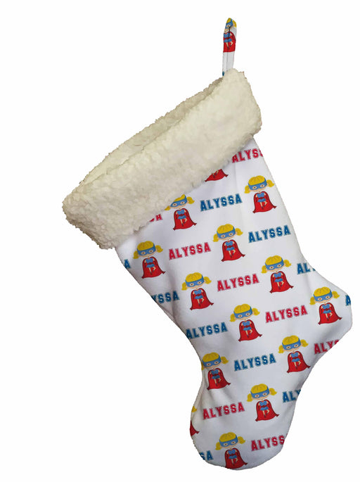 Personalize christmas stockings for the whole family this year! Our Superhero Girl design allows you to print any name or text on your stocking. Cu...