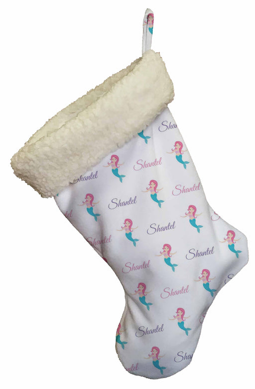 Personalize christmas stockings for the whole family this year! Our Mermaid design allows you to print any name or text on your stocking. Custom pr...