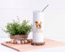 20oz, White Stainless Steel Tumbler, with clear lid and metal straw.